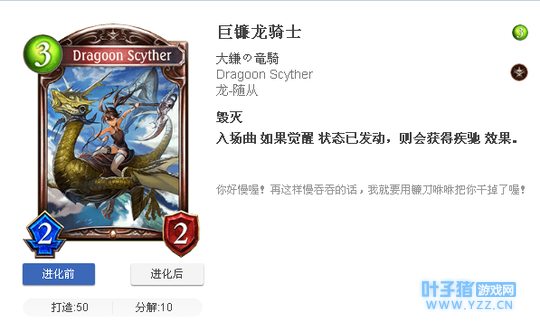 利用进化效果双解来造成场面压制效果 但是一味的解场并不能保证获胜,对手抽到key牌之后随时都能一套组合机带走你,这就需要你在解场和打脸之间选择