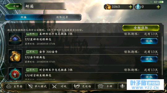 300金币+6卡包 获取方式:调查网易UU加速器调查问卷填写后短信收取(问卷已结束,可向不用的人寻求) (找QQ群、论坛、贴吧PY还行,这礼包很多都发给国际服玩家了) 游戏之内: 全服限时分享礼包