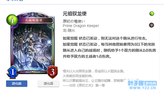 觉醒之后元祖不会被攻击到,但会被法术,随从效果选取 3.抵消卡牌负面效果,这里以黑贞为例,会对所有随从造成两点伤害,己方如果有血量不足3以上的随从时,可以进化再使用黑贞,确保随从站场,并对对方造成伤害和威慑