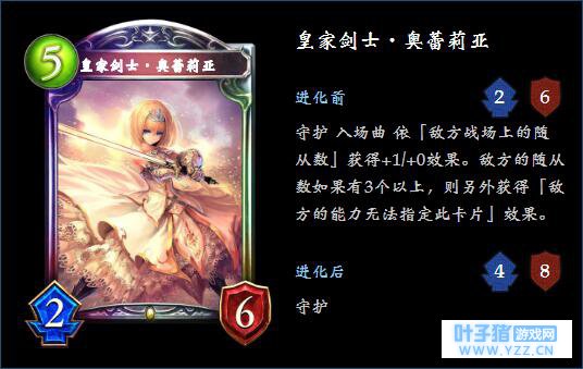 Q:使用皇家剑士奥蕾莉亚(5/2/6)和黑暗剑士梅莉莎(6/6/4)这种入场曲会改变攻击力的随从配合援护炮击(5:护符)时,如何确定炮击的伤害? A: 入场曲优先于随从/护符光环能力 ,因此会先改变其攻击力,再根据改变后的攻击力作为炮击的伤害。