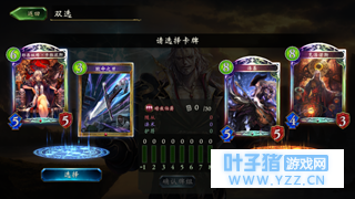 进入双选模式,就是图中的样子了,选择左边还是右边的卡牌是这个模式需要思考的问题,在凑齐30张卡牌之后,就会进入比赛界面,玩家需要对战5场,根据胜场给予奖励,当然如果觉得自己手气特别差,选出来的卡组无法获胜,也是可以直接放弃对局直接按当前胜场给予奖励。 五、卡牌