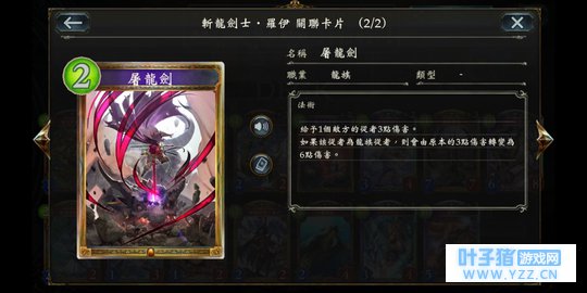 屠龙剑 前期如果对方不是特别凶的卡组,肯定是首选活龙剑跳费,3费下罗伊,往往后手4费就能靠艾拉和活龙剑直接跳到7费进觉醒(基本操作,坐下),后期屠龙剑就很灵活了。