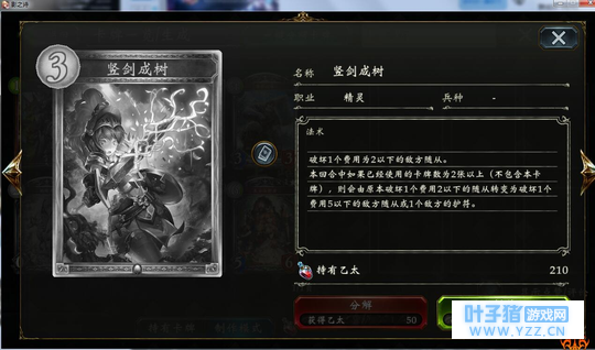 以上两张都非常适合精灵的体系,精灵针对奶炮非这两张卡莫属。使用卡牌数为两张的条件太容易达成了,但由于精灵以虫妖为主,otk就完事了,所以评分3.0。