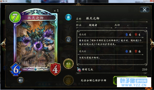 这张卡在国际服现在指定的环境里已经开始在皇家针对奶炮的环境里很泛用了,同样665不亏身材,消耗进化点还是可以接受的,但由于国服无限环境偏快速的环境,打分4.5.
