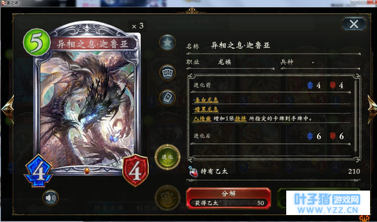 暗黑龙息:花费4,破坏一个敌方护符或者随从。本身身材略亏节奏,暗黑龙息消奶炮又亏一回合节奏,无限里大多数是脸龙,非常不适合体系,评分1.0