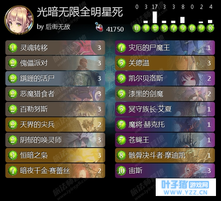 指定中针对奶炮最泛用的单卡,且由于是转化魔法,非常克制美女与野兽(中立妖),但由于无限中偏快速的环境和那一点点的负面效果,评分4.5。(想给满分) 以上就是针对奶炮的内容,下面就是前几天我一直用的国服无限全明星送葬死的卡组和实况,安利一下,非常好玩,因为你永远不知道怎么斩杀对面,或者自己怎么被手里的大哥们卡死。