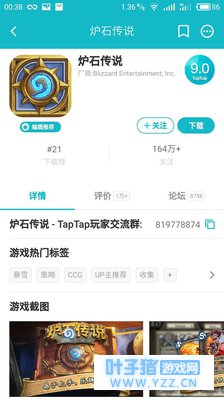 玩法上,《影之诗》会在开始时让玩家选择先手后手,并且还有换牌的补偿,这个机制炉石确实也有,这点是洗不白的。《影之诗》在使用卡牌时除了魔法值的概念外,还加入了EP的概念,EP值是用来进化卡牌的,进化后的卡牌除了攻击力和防御力上会增加以外,部分卡牌还能获得特殊能力。正是有着这些能力,才让游戏提供了更多的可能性。《影之诗》和《炉石传说》最大的区别就在于前者加入了剧情模式,再配合上日本知名声优,可以说是一种非常炫酷的感觉。 《炉石传说》在taptap上的总评分是9.0分,关注人数164万多,评论1万多条,论坛8758条,一周内评分8.8分,新版本评分8.6分。