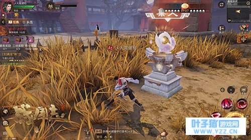 (图5 拾取兵符提升属性) 在会武中,策略的选择也十分重要。场地提供了许多草丛,将军们可以伺机藏匿其中,并在敌人经过时给予致命一击!此外,会武双方还可围绕各自的守护抢夺buff回血等团队增益机制!