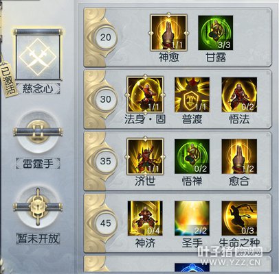 慈念心为治愈系,雷霆手为输出系,游戏内可洗点,切换流派为免费,洗点需要仙人果。这里简单说下,技能点需要通过每日地煞星的任务获取,每日可给5个仙人果,仙人果还可兑换技能点(10个换一点技能点),目前主流玩法为治愈系,团队必不可少持续治疗,在极个别情况下,可以选择雷霆手作为DPS过副本。这里只推荐大家选择慈念心流派。(告诉大家一个秘密,雷霆手在副本中是没人要哒,为什么呢,您玩过就知道- -)。目前小编四主动技能全部为治愈。(目前小编单挑可以打5个Orz..不要小看没输出,不掉血就完事,磨都磨死你*_*)雷霆手基本不用,也是完美融合了官方给“奶爸”的定义。 治疗强度提升: 圣修主修精神,1点精神=2.6治疗强度(大概是这个数字),提升治疗强度有以下几点: 1.装备。需要洗装备的主副属性,例如圣修武器自带属性,法伤及治疗强度。副属性为随机,必洗精神或治疗强度。 2.进阶。圣修进阶必洗精神,小编目前一阶二阶已到达200点精神,无敌模式已开启。。 3.技能。在四个主动的技能的最上一个默认属性为治疗强度,很多玩家不知道,可打开技能页面查看,可用历练值加到大于自身等级五级。 4.宠物技能书。目前只有汇神以及高级汇神可加治疗强度,增加灵兽自身和主人(灵兽等级X1)的精神,高级为灵兽等级X2。 经过以上的四部,相信你在不花钱的情况下也已经挤入新服治疗强度的排名榜了吧。信小编,得排行,萌萌哒˙▽˙。 职业定位:团战持续治疗 技能推荐:神愈-甘露-法身固-普渡-济世-愈合-圣手-化神 流派选择:慈念心 [编辑:叶子猪小秘书]