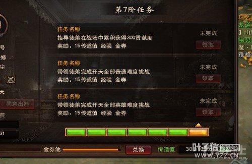 记得准备一只50级的宝宝 宝宝携带等级在四五十级吧,(有个任务是一个的50灵兽)交易过去带上,传道值拿了,交易回来就可以了