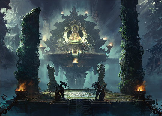 失去公主的明光城 庄严的圣殿仿佛诉说着往日的辉煌 不同于大部分手游快餐式的剧情设定,镇魔主创为世界观注入了阴谋,宫斗等元素:在明光城的宫变悲剧中,公主失去记忆流落凡世,化身古灵村少女阿星。而她与天命者的相遇,终将挽救明光城濒临崩坏的命运。