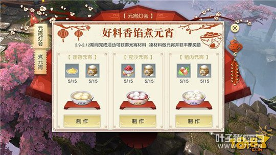 开开心心猜灯谜,欢欢喜喜闹元宵 2月9日至2月12日,玩家可以通过参加游戏内的无筝琴、神兵幻境、师门任务获得元宵材料,制作不同种类的元宵,将获得各式丰厚奖励。并且,2月11日元宵节当晚22:00-22:30,游戏将开启元宵灯会,届时玩家参与猜灯谜,回答正确即可获得经验奖励,并有一定几率获得幻彩虹光。 [编辑:叶子猪小秘书]