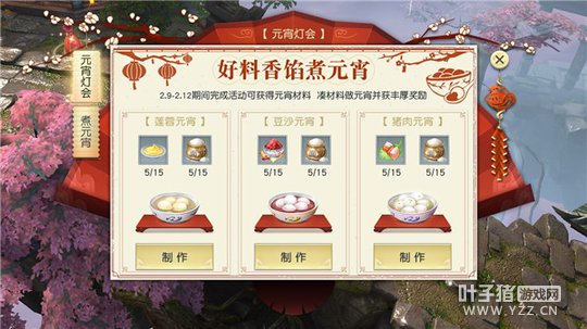 “煮元宵”活动2月9日开启(实际界面和信息以游戏内为准) 《镇魔曲》手游献礼元宵节的主题活动,第一弹登场的将是“煮元宵”,开启时间为2月9日至2月12日。活动期间,玩家通过收集不同的元宵材料制作不同种类的元宵,参加游戏内的无筝琴、神兵幻境、师门任务即可获得元宵材料。不同材料组合制作的元宵种类不同,可获得的奖励也不相同,元宵种类分为莲蓉元宵、豆沙元宵以及猪肉元宵,奖励包括了经验、宝图等。 元宵灯会将启 赏花灯猜灯谜有奖