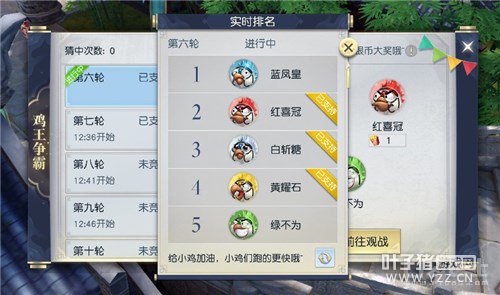 为了让天命者们在纷乱的世界中,亦能享受到轻松悠闲的气氛,《镇魔曲》手游一直努力为天命者们提供更多的趣味活动。新的休闲玩法“鸡王争霸”即将正式上线,经历了朋友圈广场、夏日时装等等活动,这次的鸡王争霸又会给天命者们带来怎样的乐趣呢? 小鸡暴走,全民竞猜大狂欢 飞奔吧!疯狂的小鸡 每周日19:00,鸡王争霸活动准时开展,五只性格不同、形象各异的小鸡将会在天阙王城环绕一周。30级以上的天命者们可以到NPC“王城养鸡厂厂长”米厂长处参与竞猜活动,选中一只看好的小鸡进行下注。下注需要鸡米花,每个鸡米花价值2万银币,可以从杂货商人处购买,挖宝的时候也有机会获得。每周最多只能使用20个鸡米花,不要把20票在一轮中就用完了哦。 呐喊助威,为你的小鸡加油鼓劲 投注结束之后,比赛正式开始,五只小鸡们开始踏上赛道进行比赛。小鸡正常行进的速度是相同的,天命者们通过给自己相中的小鸡加油,就会增加小鸡获得加速效果的概率,加油的人越多,小鸡收获的人气就越高,跑得就越快。 激烈的比赛现场,全民都嗨了 在竞赛的过程中,小鸡还会与天命者们进行互动,性格懒散的小鸡会要求不要催促,而性格奔放的小鸡则会备受鼓舞,奋勇向前。每隔一段时间,小鸡还会获得特殊效果,比如不小心睡着了,或是速度放慢,也可能会突然自己加速或是跳跃,给睡着的小鸡加油,有一定几率将它唤醒哦。 回报丰厚,大量奖金等你赢 这么多钱,真是让人垂涎 当小鸡抵达目的地之后,本轮比赛就结束,在优胜者身上投注了的天命者们就可以获得奖励。在整晚十轮的竞猜活动中,每取胜一轮的天命者,就可以获得四倍鸡米花价值的奖励,而竞猜取胜超过三轮的天命者们可以均分奖池中60%的银币,同时还有一位幸运儿可以独享20%的银币(最高1000万),剩下的20%银币将流入下一次的活动奖池。能否拿到丰厚的奖励,就看你是否慧眼如炬了。 【镇魔曲手游画廊】 拍摄者:引架行 服务器:俊采星驰 关于《镇魔曲》手游: 《镇魔曲》手游由镇魔曲端游原班人马打造,采用全面升级的自研NeoX2.0 引擎,实现电影级次世代画质,六大职业18个战斗流派,战法牧经典铁三角,MOBA“双摇杆”操作让战斗变得有意思,开创即时制MMO战斗新纪元!30多个野P战场,想战就战!点对点真人自由交易,海量个性时装、激萌灵兽,各种逗比表情花式互撩。《镇魔曲》手游——“原汁原味”的MMO乐趣,满足你对顶级MMO的所有幻想。 [编辑:叶子猪小秘书]