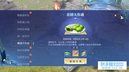 除了赏花,清明时节的传统项目吃青团自然也不能少。《镇魔曲》“青团大作战”活动里,天命者们只需要收集石头交待的东西,协助他做出美味的青团,就能收获海量经验、银币、明光玉、石火精等丰厚奖励! 为了让天命者们能安心参与到清明扫墓等传统活动中,《镇魔曲》在清明节期间还特别推出了减负活动“踏青寻春去”,3月31日至4月8日期间日常玩法尽数“减负”,只需要不到平时一半的时间即可获得足额奖励——购买“祈愿春光好”活动中的清明特权卡后,除了获取限时时装、每日绑定元宝放送等福利外,还能每天参与抽奖、享受更多的“减负”特权! 双节丰厚福利到,八重活动大回馈 清明、赏花活动忙,福利礼包自然也不能少!双节期间,《镇魔曲》备下了八重活动回报天命者们,丰厚福利等你来拿!