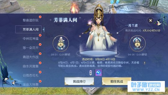 清明春意浓,赏花正当时。即日起至4月10日,《镇魔曲》“双节”活动火热开启!“芳菲满人间”活动里,梅君、兰君、桃君三位花神依次降临,副本全面开放;“中州花神笺”中,天命者们只要参与日常任务完成拼图并分享朋友圈即有奖励送上;活动期间每天三个时间段还将开启“等一朵花开”活动,天命者们只需要猜对三朵花的颜色就能参与到活动之中——赏花活动多,魂珠、海量经验、巨额银币、绑定元宝、明光玉、七星鼎等奖励等你拿!