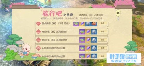 网易角色扮演治愈系MMO镇魔曲“旅行吧,小光头”全新春游明信片来啦!在这个阳光明媚、鸟语花香的季节里,小光头也放飞了身心、与春天来了一场最亲密的接触!天命者们,有没有收到小光头寄回的全新明信片与独特的玩具呢?“春游”主题活动正在进行中,赶快打包行囊,与小光头一起踏青春游吧! 主题活动进行中,元宝、道具大放送
