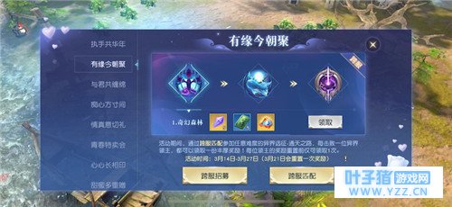 跨服匹配奖励重置,额外好礼不要错过 同时“有缘今朝聚”活动也进行了奖励重置。截止到3月27日为止,天命者们可以再次通过跨服匹配挑战通天之路、领取包括海量经验、明光玉、青龙石等珍稀奖励在内的额外奖励! 全新头饰、双人坐骑上架,超值礼包升级归来