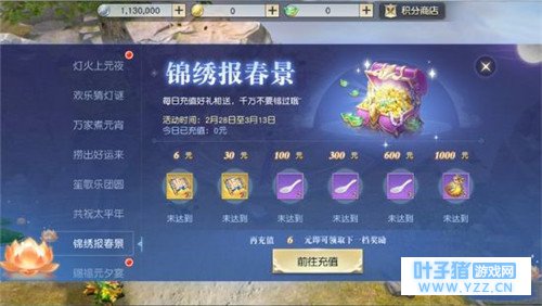 锦绣报春景,每天充值都有好礼拿 在锦绣报春景活动期间,天命者们只要每日充值达到指定额度即可获得白玉匙、寻龙尺等在内的珍稀道具奖励!每天刷新、天天能领,额外福利拿不停!