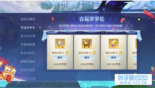 吉运岁岁长活动里,镇魔曲还会在特定的八天送上新春福袋,天命者们只需要登陆游戏就能领取天香玉露、天宫诏书、七星鼎、幻彩虹光、万年灵芝、青龙石、璀钻等超值福利!