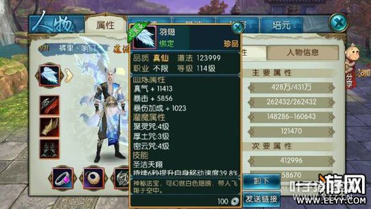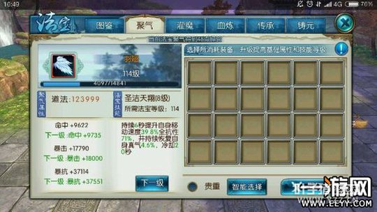 法宝选择羽翅,因为从一开始就打算玩纯真气鬼王,法宝舍弃了攻防血,主要堆真气暴击爆伤,大多数同学想当然认为羽翅只有一项加蓝的用处,其实羽翅的抗性buff也是很强大的。灌魔并不完美,有条件还是希望能洗出霸天戮杀,舍弃部分气血,多添加0.2秒的控制时间。聚灵、防御必须要没毛病。