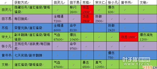如图,可以直观的看出,虽然带曾书书比带文敏少了2个属性,但是真气合欢无用,实际上只少1个属性,相比之下,带攻击更合适。 合欢的过度阵容:田灵儿、田不易、苏茹、宋大人、齐昊、曾书书