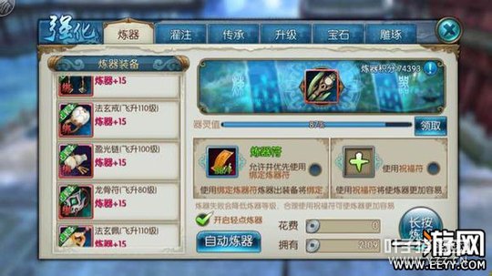 首先练器没有所谓的玄学,所谓玄学在数据面前就是个笑话,无稽之谈,接下来我和各位道友分享本人的一些练器心得。 目前体现练器的高度主要有两个方面: 一、练器积分,本人亲身记录无月光,无垫子的积分体现,不是特别精准,但八九不离十,包括首饰在内-100级全套真仙15积分约6.5万.130全套真仙积分约14万,150全套真仙积分约26万。以上是数据,接下来我们通常说练器积分高装备爆率就越高,这个说法是正确的,练器积分相当于一个容器,如当你的练器积分达到了26万(不包括代练的虚高积分),那你的装备基本就毕业了,练器100级以及130级的积分,本人的号有亲身体验,而150真仙毕业的积分可以去看v17以上的大神参考一下。 二、器灵值:这个后期出的器灵值,可以说是有利有弊,刚开始出来的时候,本人也看过一些直播练器基本一出2点就换一个神品,该主播还笑称骗到,然而是否真的骗到,本人有亲身体验过,首先器灵值我们可以把它理解为类似雕琢的幸运值,当达到100%的时候练器成功率非常之高甚至连上,而换了月光宝盒之后就进入中毒期,解毒的方式就是继续上符,这个时候不建议大家用祝福,大可以自动练器攒器灵值,这是比较平稳的练器方式,比如当你的器灵值达到40可以用祝福符辅助上11是没问题的,所以器灵值等于幸运值。 练器等级的积累方式除了上述平稳提升,还有一个方式就是买垫子辅助,否则老实砸符,经验分享到这,希望能够帮助更多的道友,本人是28区九天烟雨公孙玉书,附上本人炼器图,不喜勿喷,欢迎来找我交流%(有木有元宝奖励)