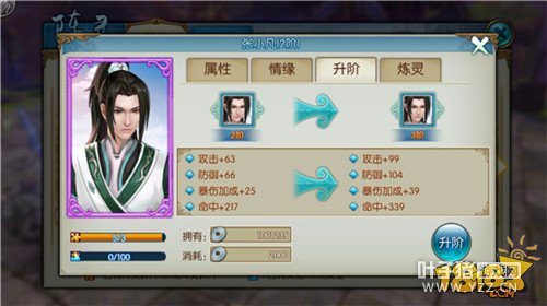 升阶: 升阶需要消耗当前一定数量的阵灵碎片及灵尘 升阶后可提高当前阵灵的属性