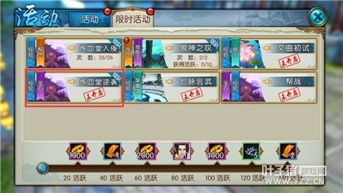 活动入口 玩家可以点击主界面中的活动按钮,在限时活动列表中找到炼血堂逆袭,点击即可参加活动。