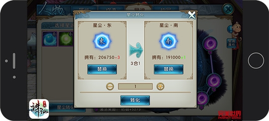 图4:《诛仙手游》星魂转化提升星魂等级 星图为开 区域激活道行巅峰 星图内的星魂孔是按照区域逐步开放,仙友们可不断用对应星魂将已镶嵌的星魂进行升级,逐步开启下一个星魂孔。当一个区域内都填满星魂并达到一定等级,还将激活的区域属性,带来的威力亦是不容小觑。 当一幅星图内的三个区域都装满了星魂,并且星魂都大于一定等级时,该星图即完成,可以激活额外属性加成,并开启新的星图。随着星魂间的不断吸收和培养,区域属性的不断激活,以及多幅星图的渐次开启,会有更多更为强大的属性为你加持,今后无论日常任务,或是PK作战,都将如虎添翼。可以说每一幅星图的展开,都是你修仙问道的另一个巅峰!