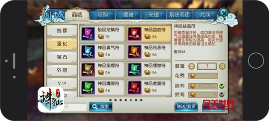 图2:《诛仙手游》摆摊交易广场 不必剁手 购买物美价廉 打开【我要购买】分页,选择想要购买的分类及具体条目,这里装备、饰品、法宝、强化等等品种丰富,琳踉满目的物品任你挑选! 选取好预购的物品,确认好物品及售价信息后就可以买入物品了。买入物品将扣除金币,所得之物将通过邮件发送给你,记得查收哦~ 需要注意的是,购买的物品有一定的保护期,保护期内不可再次转手哟。