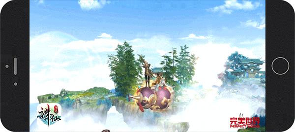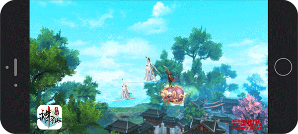 图4:双人组队(Gif) 天地无疆 全角度自由翱翔 《诛仙手游》采用3D视角,可全方位转动的同时,还在此基础上制作出前所未有的无死角御空飞行系统。这里的天空层次分明,有林间树木高耸,有山巅云雾缭绕,御空飞行自由度极高,玩家可以同时操控飞行方向和高度,360°自由飞行,体验真正的御剑修仙。