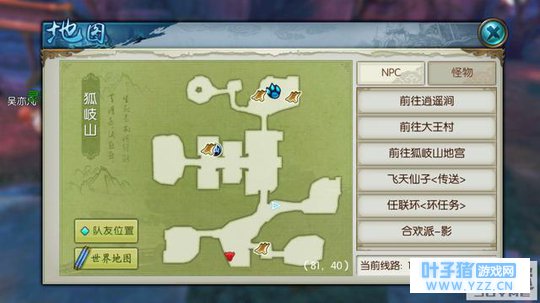 世界地图 诛仙手游白狐在哪里 首先先来解决大家这个疑问,其实白狐就是灵狐啦。大家没办法完成任务的原因应该也是在游戏中根本找不到白狐吧。其实想想能跟他靠上边的也就是灵狐啦。 诛仙手游冷血嗜杀隐藏任务攻略 1、打开世界地图,前往狐岐山(鬼王) 2、找到坐标82,40,自动寻路过去。