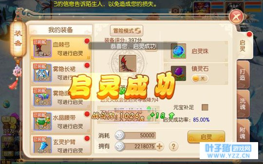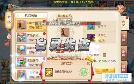 可以看到,从0到1的时候是100%成功的,但是要从5启灵到6的成功率就到了85%,如果你觉得还可以一搏的话也没有问题,但是再往上成功的几率就会越来越低,而且如果启灵失败的话等级还会掉1级,这是让人十分痛心的事情。。。(虽然失败之后会为下次启灵增加一定的成功率,也算作是补偿了吧)