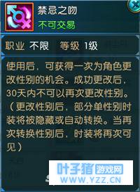 4)转性别道具:禁忌之吻,可通过商城购买。售价1999绑定元宝。