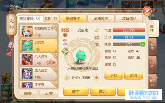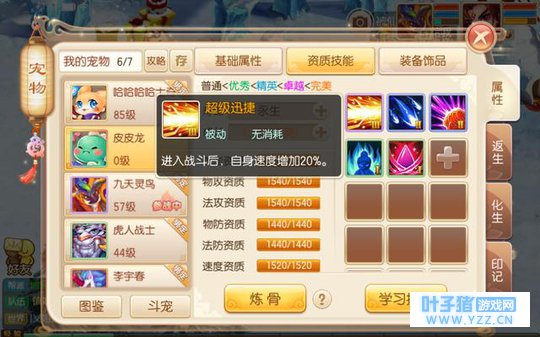 神兽果然不一般,出生满属性,自带5技能(两个高级,一个超级)果然是对得起SSS的评级,其实在小编看来,神兽相比于普通宝宝最大的好处就在于它的资质是固定的,不存在还需要炼骨之类的提升资质等问题,只用学习技能就好了。 对比了一下之前同样是系统活动对话的喵太郎,皮皮龙的各方面资质属性都要高出不少,这一波看来是稳赚不赔了!喜欢皮皮龙的小伙伴们抓紧时间了,在错过这次机会就不知道要等到什么时候了,小编只能帮你们到这里了。 [编辑:叶子猪小秘书]