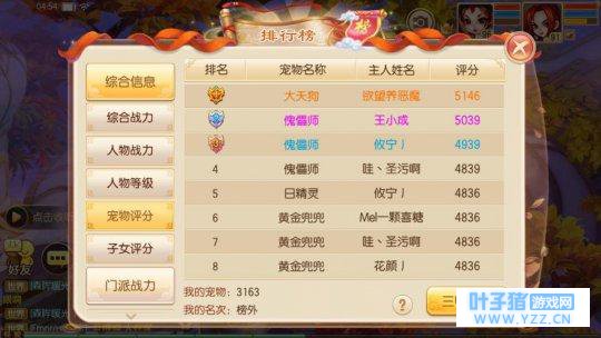 宠物排行榜 小编所处的服务器也只有唯一一只大天狗,作为SSS级神兽,排行榜上第一便是大天狗,它的主人给它打上的技能都是超级级别的(哇,真土豪),一看,果不其然作为隐攻宠物显身。