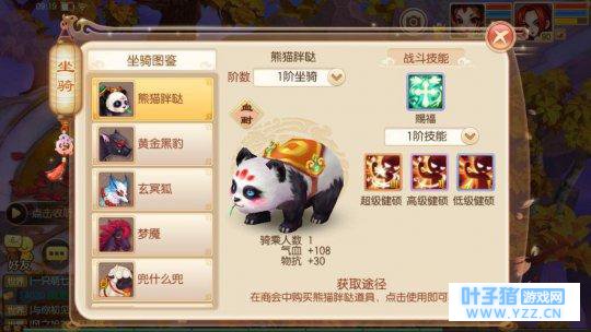 嘟嘟车坐骑 熊猫胖哒 作为国宝,胖哒可爱蠢萌的外观一直深得玩家们的喜爱,且获取途径跟其他坐骑相比,简单一些,玩家可以在商会购买道具即可获取,胖哒提供的被动战斗技能赐福,对友方使用门派治疗技能前,有概率增加施法者治疗效果。很明显胖哒属于天音寺门派的专属坐骑,另外一个坐骑技能是健硕,被坐骑守护的宠物会增加气血上限。