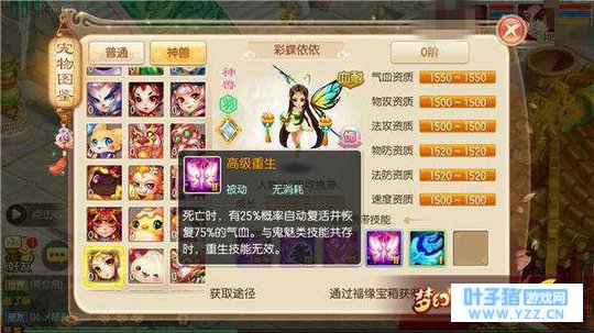 高级重生:这个技能是彩蝶依依的被动技能,在死亡时有25%的概率复活并获得75%的气血。但是要注意的是如果和鬼魅灵技能共存时这个技能会无效。但还是改变不了这个技能逆天的存在,让彩蝶依依成为一个能抗能打的存在。怒火:法术攻击会造成10%的暴击,可以搭配它的另外两个技能使用。