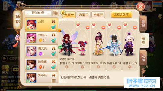 二号位和三号位提供减伤,是为队伍中比较脆弱的仙侣准备的,一般情况下建议将天音、圣巫这样的辅助型仙侣放在这两个位置,可以提供更好的保护。四号位提供了伤害加成,是队伍中强力输出型仙侣的位置,推荐可选的角色有陆雪琪、金瓶儿等。最后一个位置也有速度加成,适合放封系仙侣,以便能更早出手限制对方,或者有毒属性、减防被动技能的仙侣,总之就是越早打出越好。