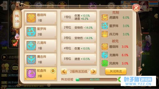 在游戏中阵法是提升队伍战斗能力最有效率的方法,普通升级、修炼、装备等等办法往往需要花费大量的银币和物资才能提升1%~2%,而阵法就可以直接提升百分之十几。因此,选择对的阵法往往是战斗能否胜利最关键的因素之一。