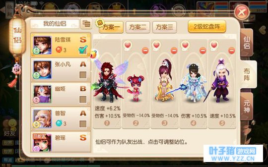 第三点就是仙侣,一个完整的阵容由4个仙侣+主角+宠物组成,从个数就可以看出仙侣在队伍中的分量和重要性。虽然仙侣不能像宠物一样手动控制释放什么技能,但是不同功能的仙侣可以为队友提供各种各样的帮助,比如输出、治疗、封印等。一套好的仙侣阵容并不完全决定于仙侣的评级,而在于是否适合你的战术体系,如果主角是输出系的角色,那么就最好能有辅助型仙侣上阵为队友恢复状态,如果主角是封印或者辅助型的那么应该主要以输出系仙侣为主补足伤害。