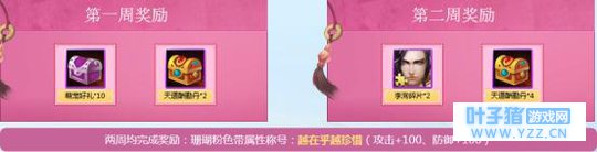 越在乎,越珍惜 活动时间: 第一周:03月01日0:00-03月07日23:59 第二周:03月08日0:00-03月14日23:59 在活动时间内,第一周完成5次彻夜不眠、云峰炼药2次完美评价、参与1次烛龙之怒,即可获得萌宠好礼*10和天道酬勤丹*2;第二周同样完成5次彻夜不眠、参与2次帮战和参与1次八凶玄火,即可获得李洵碎片*2和天道酬勤丹*4。最后连续两周都完成任务的,玩家可以获得珊瑚粉色系称号:越在乎越珍惜。