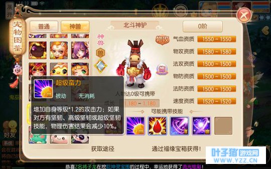 在游戏中经常见到玩家使用皮皮龙、喵太郎等神兽作为宠物,一方面是由于他们超萌可爱的外表,另一方面还有这两种神兽都可以通过官方活动的碎片兑换得到。而还有一些宠物之所以我们在游戏中不常看到并不是因为他们不够厉害,可能只是没有那么容易获得,今天我们要介绍的主角就是——神兽北斗神驴。