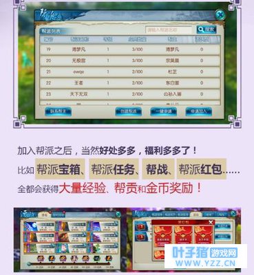 在萌新攻略的前两弹,小编带着各位仙友,对新仙侠世界做了一个大概的了解。那么新《诛仙手游》的乐趣,除了小凯的盛世美颜和游戏本身任务乐趣,还在哪里?当然是极其丰富的社交系统啦,帮派+师徒+好友+结婚,你要的,新《诛仙手游》都有! 如何加入一个帮派?在游戏中,玩家可以自己创建帮派和管理帮派(自己当帮主可以很威风的哟~)但是如果你不会管理帮派的话,当然是找个和谐友爱的帮会更简单啦~当玩家等级到达10级,就可以打开帮派界面,挑选自己喜欢的帮派申请加入,一旦申请通过,你就是帮会的一员了~完成帮派任务,还能有大量经验、帮贡和奖励哟~