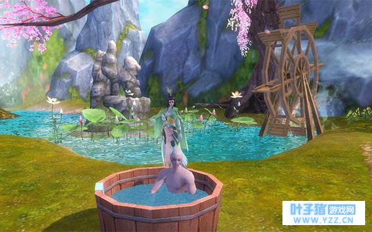 实在是有点尴尬啊,作为修仙风格的游戏,游戏玩家居然还会睡觉,更离谱的还是2个修仙的男性玩家,受不了,受不了。 第四:泡澡系统 据悉,现在游戏中有很多玩家都不要脸,胆子很大,公开的在自己的仙府泡澡,在家园中用大木桶泡澡,这都不算什么,我就想问问,身后的女玩家看到这一幕会不会脸红?