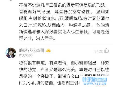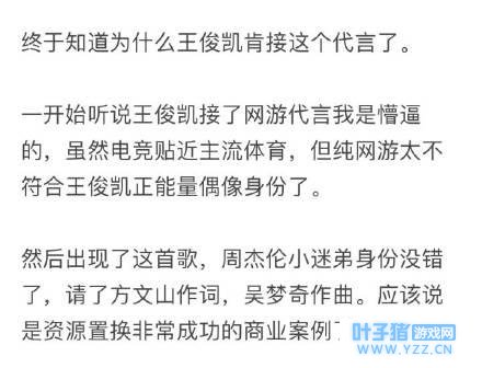 当然了,王俊凯的粉丝千千万,里面不乏一些心思细腻的小姐姐。像这位同学表示,一开始觉得代言手游有些掉价,毕竟游戏给人的感觉就是玩物尚志。但是主题曲一出,瞬间给人的感觉不一样,歌曲里很好的表达了王俊凯正能量的一面,从人设到词曲再到游戏,不得不说这次代言取得的效果比想象中要大很多。 小伙伴们听过新歌之后感觉怎么样呢?欢迎大家到评论区留言。 |