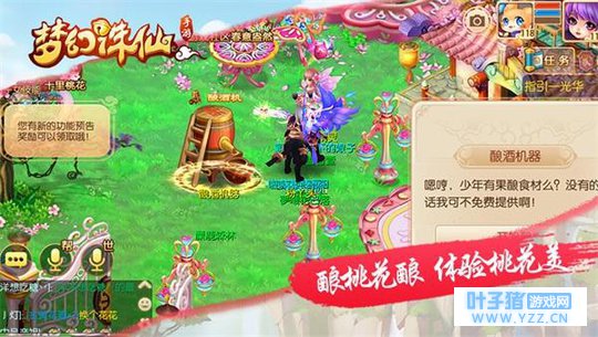 酿桃花酿 体验桃花美 在钟情桃花节期间,少侠们还可以委托桃花精灵完成任务,并收获每个小阶段的事件奖励。而在小精灵完成委托的过程中,有时会需要侠士出手协助战斗,若小精灵完成全部事件,少侠则可以获得果酿食材,制作珍贵的桃花酿。