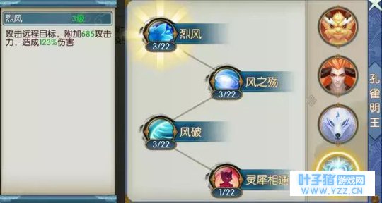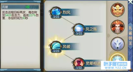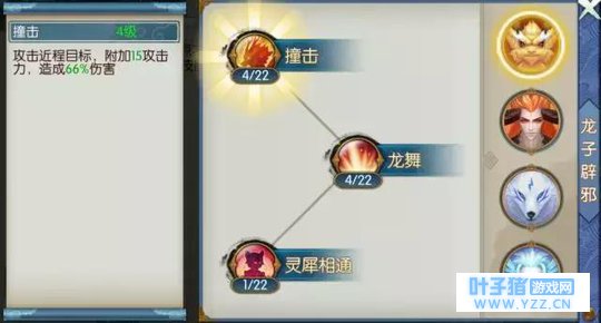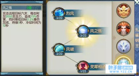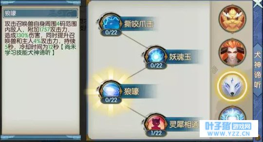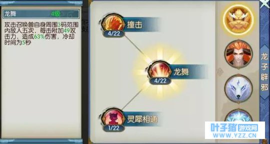 三系大招可分别召唤三种不同的召唤兽,其中赤炎金猊、犬神谛听为近程攻击,孔雀明王为远程攻击。 龙子辟邪