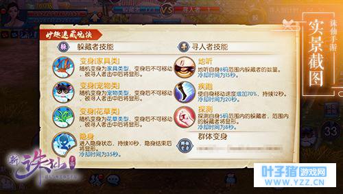 游戏中,玩家将分为躲藏者和寻找者。躲藏者可以随机变身为建筑、宠物、花草三类不同游戏道具,比如一个石桌、一个秋千、一株桃花树、一只小熊等等....总之,躲藏者需要根据周围的环境选择最合适的变身,避免被寻找者发现;而寻找者则需要通过使用自身多种技能来找出所有躲藏者。